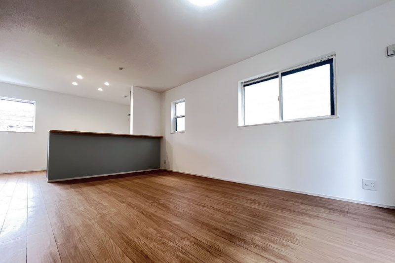 2階のリビングは南向きで陽当りがよく、明るく快適な空間です。雨の日でも乗り降りがラクラクなビルトインガレージ付きです♪